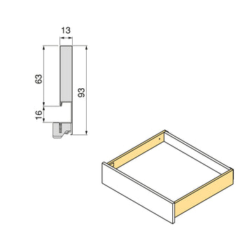 - Kit mit dem erforderlichen Zubehör zur Anbringung einer Außenschublade mit einer Höhe von 93 mm und einer Tiefe von 450 mm, Böden, Vorder- und Rückseite ausgenommen.