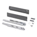 Kit für Küchen- und Badschublade Vertex mit allen notwendigen Elementen für die Montage. Es ist die optimale Lösung für Ihre Küchen-, Bad- oder Schränke mit einem eleganten Design in Anthrazitgrau und Weiß. Jedes Kit besteht aus allen Elementen, die für die Montage einer Außenschublade mit einer Höhe von 93 mm, sind für eine Brettstärke von 16 mm für den Boden und die Rückseite der Schublade ausgelegt. Es enthält: zwei Seitenschienen, einen Satz weicher Schließführungen, einen Satz Verkleidungsabdeckungen und die Befestigungselemente für die Schubladenfront.