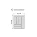 Besteckfach für Universal-Küchenschubladen in geradlinigem Design, großer Stauraum für Besteck und andere Küchenutensilien, optimale Platznutzung. Da es sich um Ausschnitte handelt, können sie für Schubladen mit Modulen mit Standardbreiten zwischen 400 mm und 900 mm und Tiefen zwischen 450 mm und 500 mm mit Dicken zwischen 16 mm und 19 mm je nach gewähltem Modell dimensioniert werden.