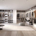 Bausatz bestehend aus einem Tablett mit Trennwänden und einem Rahmen mit breitenverstellbaren Kufen. Das Regal ist in einem sorgfältig entworfenen minimalistischen Stil gehalten, der sich durch seine strukturierte Oberfläche in Steingrau oder Schwarz auszeichnet, was der neueste Trend bei der Gestaltung von Kleiderschränken in Schlafzimmern und Ankleidezimmern ist. Er macht die Kleideraufbewahrung komfortabler dank seiner sanft schließenden und teilweise ausziehbaren Schieber, die ein langsames und geräuschloses Öffnen und Schließen des Rahmens ermöglichen, um Stöße zu vermeiden, und dank der Verkleidungsteile, die die Schieber verdecken.