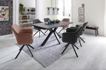 MCA | NAGANO ESSTISCH AN | 160(240)X90CM,TP:KERAMIK | ANTHRA.SÄULE:MET.SCHW MAT