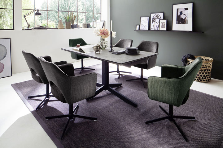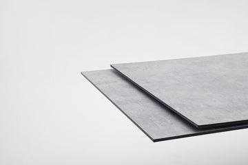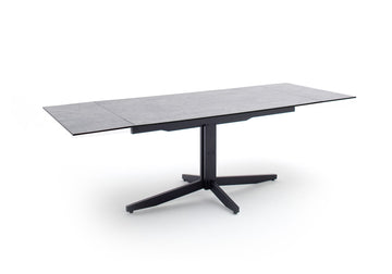 MCA | RIMINI ESSTISCH 160-240CM | HPL/SICHERHEITSGL.BETONOP | SCHW.MAT.LACK.STIRNAUSZUG