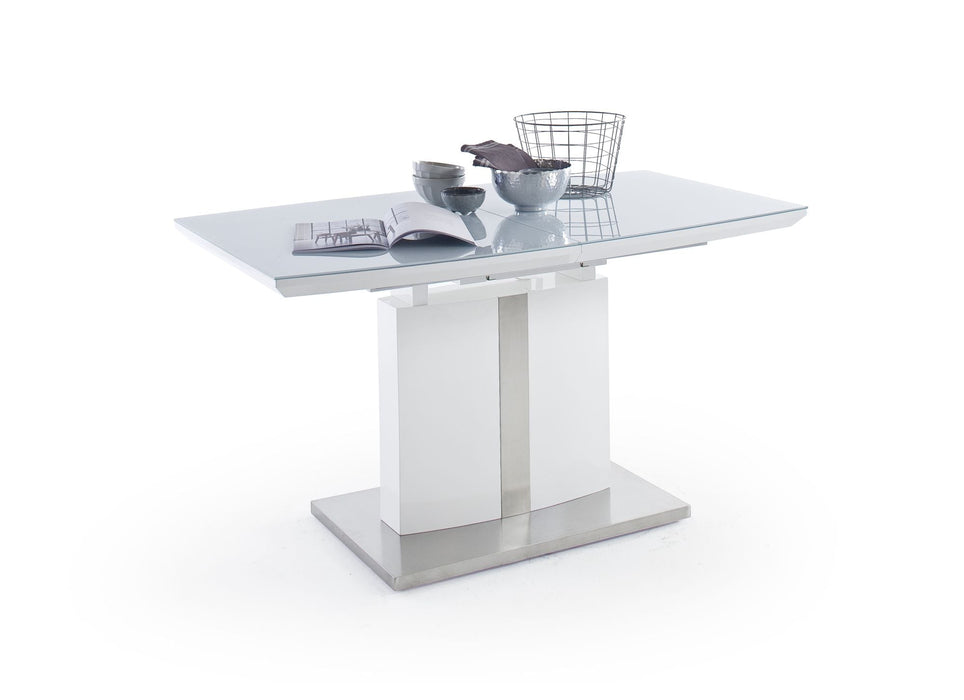 MCA | NAJUMA SÄULENAUSZUGSTISCH | 140(180)X80CM,TP: MDF HGW | BP: EDELSTAHL GEBÜRSTET