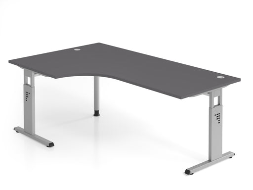 Vollständige Details anzeigenWinkelschreibtisch OS82, 200 x 120 cm Platte: Ahorn, 25 mm dick, 2 mm ABS-Kante Winkelform 90°, links oder rechts montierbar C-Fuß-Gestell in Grap...