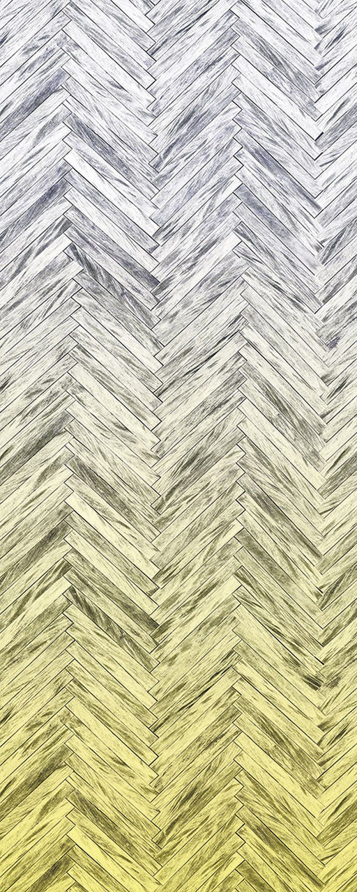 Vollständige Details anzeigenAltes Holz ganz neu: Fischgrätparkett mit modernem Farbverlauf in Gelb.Deutsches Qualitätsvlies (150 g/m²) mit samtiger Textiloptik, formstabil, ge...