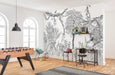Wie aus einem Tarzan-Comic mutet die moderne schwarz-weiß Zeichnung eines tropischen Dschungels an.