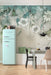 Die kunstvolle Wandgestaltung mit Blumen und zarten Schattierungen erstreckt sich von der Decke herab und wirkt wie eine filigrane Zeichnung an der Wand. Diese detaillierte Darstellung verleiht dem Raum einen Vintage-Charme und schafft eine romantische Atmosphäre. Die Kombination aus zarten Farben und kunstvollen Details macht das Wanddesign zu einem echten Blickfang und lädt zum Verweilen und Träumen ein.