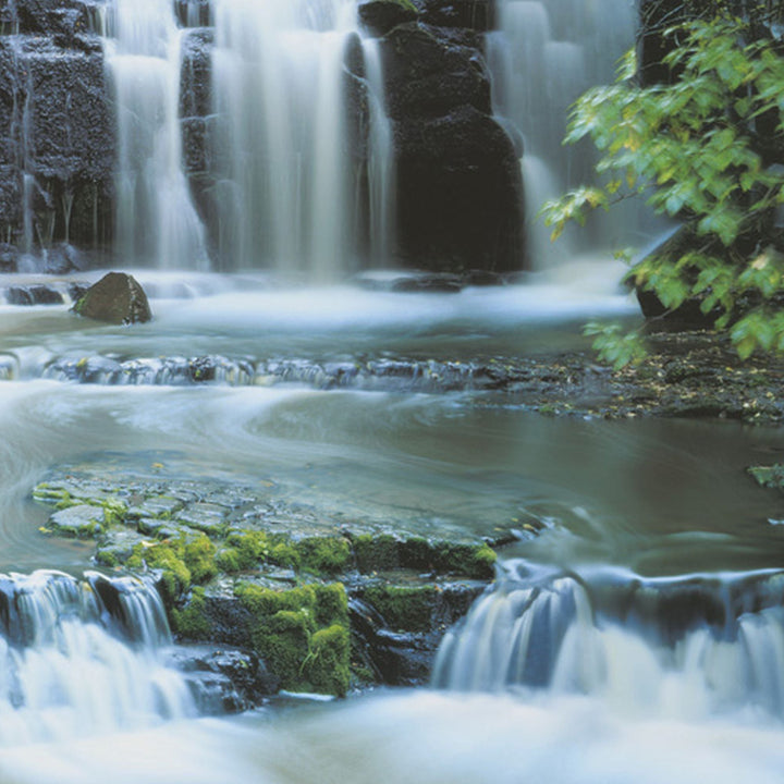 Ein Wasserfall, ausdrucksstark und prachtvoll, bringt Kraft in die eigenen vier Wände.