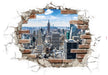 Zimmer mit Ausblick: Das Wandtattoo mit Mauerdurchbruch gibt den Ausblick auf einen atemberaubende Skyline frei!