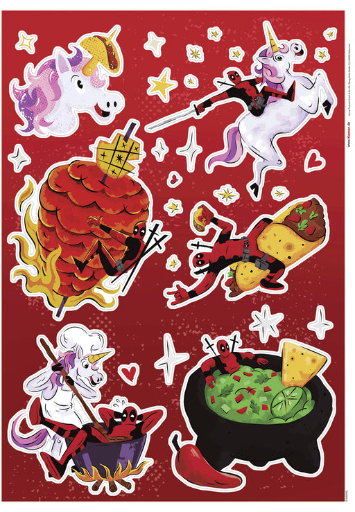 Vollständige Details anzeigenDie lebendigen Wandsticker zeigen den berühmten Deadpool in unterschiedlichsten Posen. Mal zeigt er sich mit einem Burrito, mal mit einem Taco - ty...