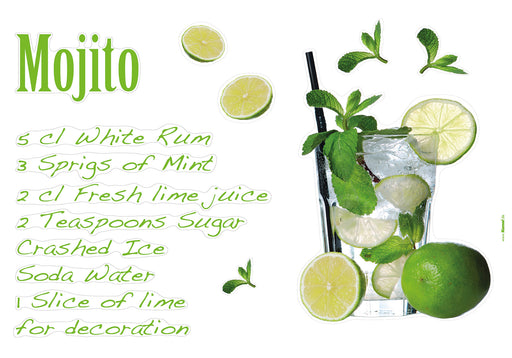 Vollständige Details anzeigenDer Cocktail-Klassiker mit Minze Macht Lust auf die nächste Party! Hochwertige Selbstklebefolie. Die Deco-Sticker sind selbstklebend, rückstandsl...