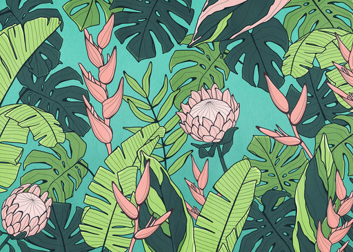 Vollständige Details anzeigenEin zauberhafter Dschungel in sanften Grüntönen bringt frische Abwechslung in den Raum. Große tropische Blätter und einzelne rosafarbene Blüten hol...