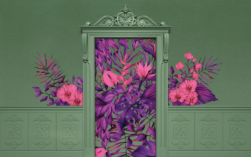 Vollständige Details anzeigenDie Wandtapete vereint auf elegante Weise einen klassischen Stil mit kunstvollem Stuck und einem detaillierten Türbogen mit floralen Akzenten. Hint...