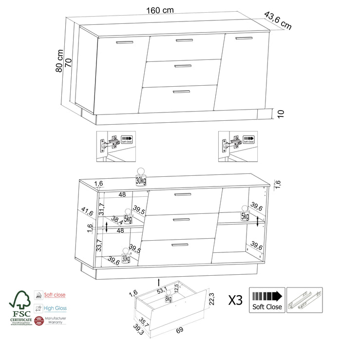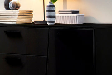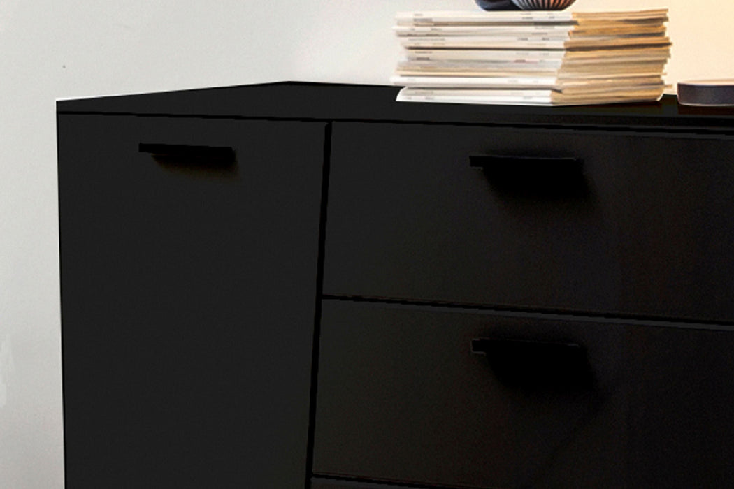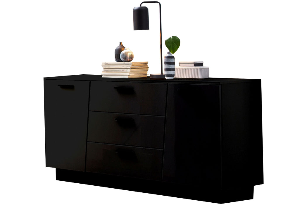 Hometrend | EMIRA 084 Sideboard | Schwarz MDF Hochglanz Tiefgezogen / Schwarz