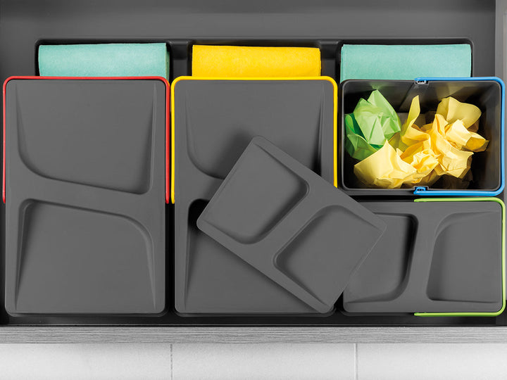 Emuca | Basis Recyclingbehälter Küchenschublade, 3 Fächer, Modul 900mm, Kunststoff anthrazitgrau