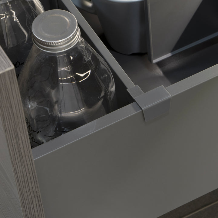 - Schubladentrenner geeignet für 900 mm breite Module und eine minimale Schubladentiefe von 350 mm.