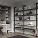 - Das Design passt sich an alle Arten von Umgebungen und Räumen an: Wohnung, Umkleideräume, Büro und Geschäfte. Kombinieren Sie das Zubehör mit den Profilen, um Ihre ideale Komposition zu schaffen: Holz- oder Glasböden, Module oder kleine Schränke und Hängestangen.