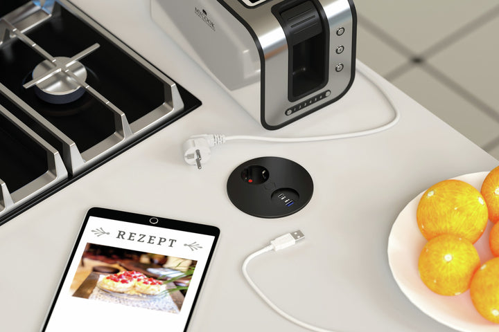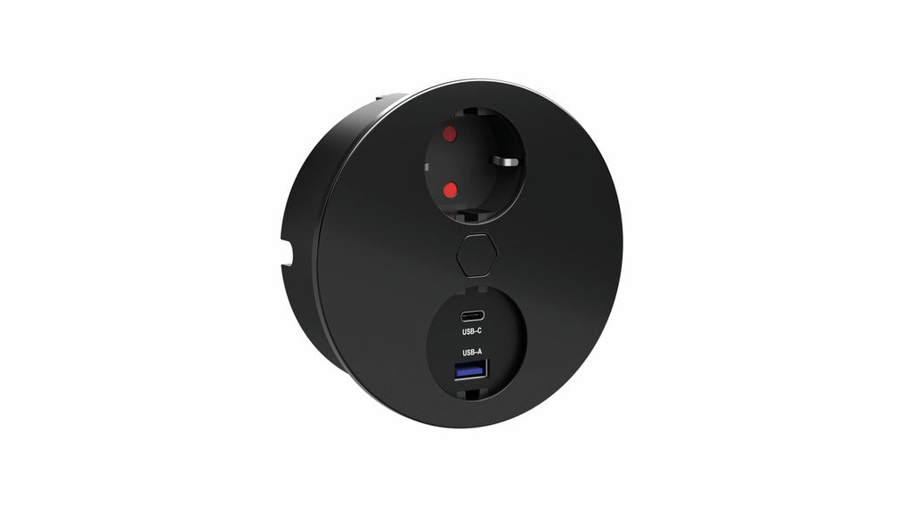 Naber | Duplex USB A+C | Einbausteckdosenelemente | rund | mit Schukosteckdose | schwarz matt