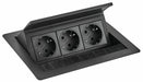 Steckdosenelement. 3-fach. Zum Einlassen in die Arbeitsplatte (bis 50 mm Stärke).Deckel und Rahmen aus Edelstahl.