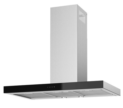 Insel Dunstabzugshaube mit Touch-Control-Bedienung, LED-Anzeige weiß, 3 Normalstufen, LED-Beleuchtung, Nachlaufautomatik, Edelstahl/Schwarz, 90 cm,...