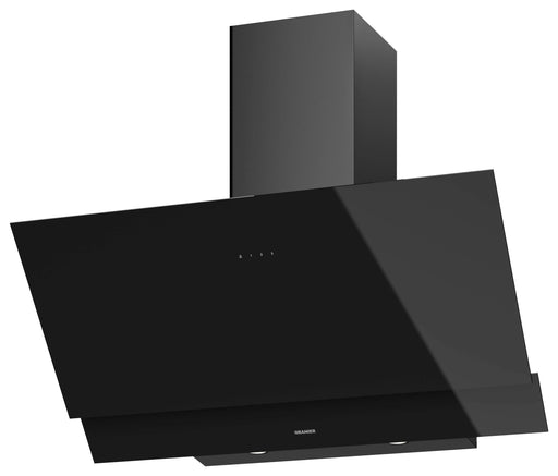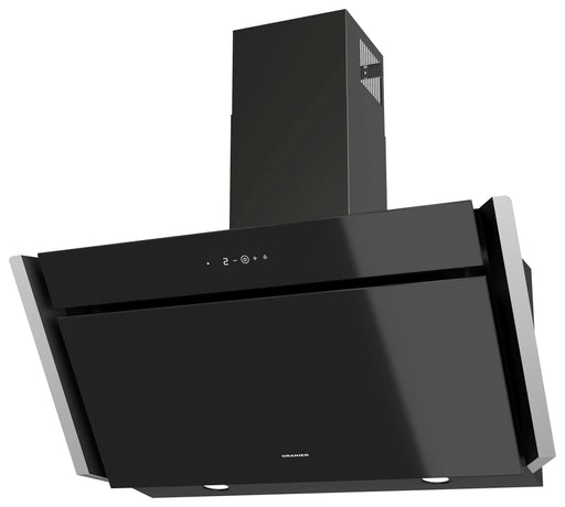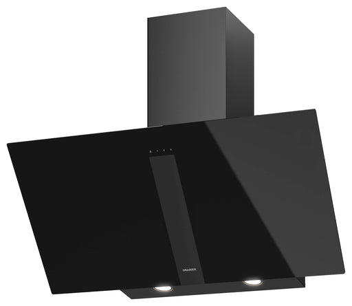 Schublüfter mit Touch-Control-Bedienung, LED-Anzeige weiß, 3 Normalstufen, LED-Beleuchtung, Nachlaufautomatik, Schwarzglas, 90 cm, u. v. m..