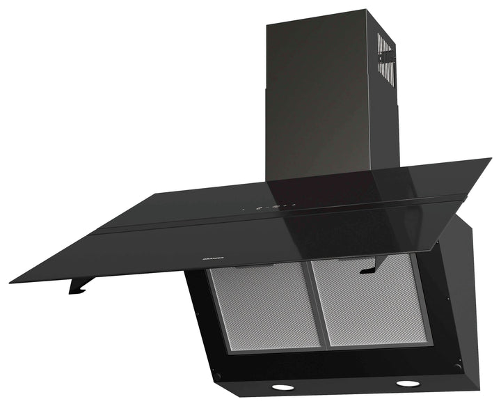 Schublüfter mit Touch-Control-Bedienung, LED-Anzeige weiß, 3 Normalstufen, LED-Beleuchtung, Nachlaufautomatik, Schwarzglas, 90 cm, u. v. m..