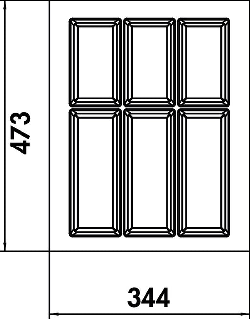 Besteckeinsatz. Farbe schwarz matt Rand schneidbar min./max. Breiten und Tiefen siehe Maßzeichnungen H 50,5 mm