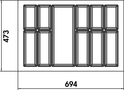 Vollständige Details anzeigenOrdnungssystem. Für jede Schublade ab 600 mm Breite geeignet.Set bestehend aus: 1 Rahmen 5 flexible Einteilungen nesttex® Maße 130 x 472/520 x 472...