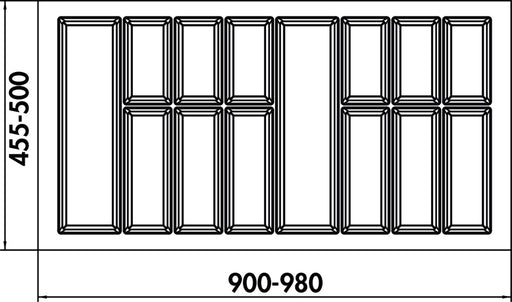 Vollständige Details anzeigenPassend für 800er und 900er Schublade. Set bestehend aus: 1 Modify Besteckeinsatz (8035021/8035121) 4 Modify Schalen (8035022/8035122) 1 Modify Ant...