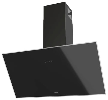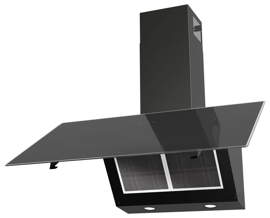 Schublüfter mit Touch-Control-Bedienung, LED-Anzeige weiß, 3 Normalstufen, LED-Beleuchtung, Nachlaufautomatik, Schwarzglas, 90 cm, u. v. m..