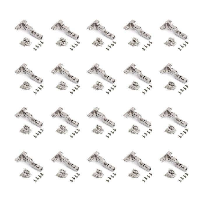 Emuca | Kit von 20 Topfscharniere X92 Innenanschlag, Schließautomatik, Kreuzmontageplatten zum Schrauben, Stahl, vernickelt