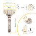 Kit von 20 Topfscharniere X92N Eckanschlag, Kreuzmontageplatten zum Schrauben, Durchmesser 5x9,5mm, H 0, Stahl, vernickelt