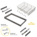 - Rahmen mit Soft-Close-Führungsschienen und Vollauszug, belastbar bis 30 kg. Hergestellt aus hochwertigem Kunststoff und Aluminium mit einer eleganten Titan-Optik (RAL 7039). Die Montage ist einfach und effizient: Der Rahmen wird lediglich an der Seitenwand des Schranks verschraubt. Er ist für verschiedene Schrankbreiten geeignet, dank der 13 mm Verstellung pro Schiene sowie der mitgelieferten Abstandshalter.