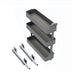 Er lässt sich einfach an der linken Seite des Schranks mit einer Bohrschablone montieren und wird mit den notwendigen Befestigungsschrauben geliefert. Er erfordert einen Korpus mit mindestens 460 mm Tiefe und ist geeignet für Platten mit 16, 18 oder 19 mm Stärke.
