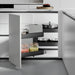 - Ausziehbares Ecksystem mit Soft-Close für Kücheneckschränke, entwickelt für die Aufbewahrung und den einfachen Zugang zu Utensilien, Lebensmitteln oder kleinen Elektrogeräten.