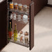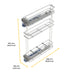 Der aus Stahlstäben gefertigte SupraMax-Flaschenhalter verfügt über eine robuste und langlebige Struktur. Er wird auf der linken Seite der Küchenzeile installiert und ist mit 16, 18 und 19 mm Brettmodulen kompatibel. Er verfügt über drei Lagerebenen und verdeckte Auszugsführungen mit sanftem Schließen, die einen sanften und leisen Lauf gewährleisten. Außerdem sorgt seine Tragfähigkeit von bis zu 30 kg für eine optimale Leistung im täglichen Gebrauch, während die drei Trennwände für den unteren Korb eine flexible Organisation ermöglichen.Das Set umfasst den Flaschenhalter, die Vollauszüge, Montageschrauben und die drei Trennwände, was eine einfache und schnelle Installation ermöglicht.
