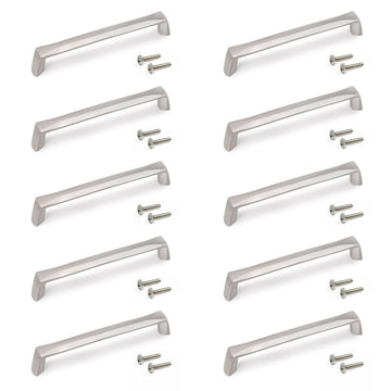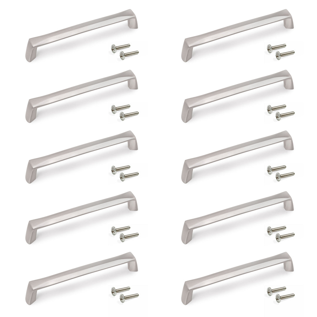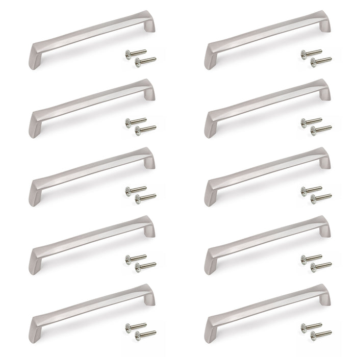 Emuca | Lot von 10 Möbelgriffe Canton, L142mm, 128mm Achsenabstand, Zamak, Nickel satiniert