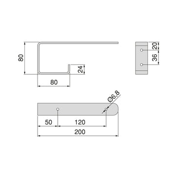 - Die Halterungen haben zwei Löcher mit Ø6,8 mm zur Befestigung einer empfohlenen 600x200 mm großen Platte (nicht im Lieferumfang enthalten) mit Holzschrauben (nicht im Lieferumfang enthalten).