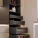 - Kit mit dem erforderlichen Zubehör zur Anbringung einer Außenschublade mit einer Höhe von 131 mm und einer Tiefe von 300 mm, Böden, Vorder- und Rückseite ausgenommen.