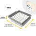 • Rahmen mit Soft-Close-Führungsschienen und Vollauszug, belastbar bis 30 kg. Hergestellt aus hochwertigem Kunststoff und Aluminium mit einer eleganten Titan-Optik (RAL 7039). Die Montage ist einfach und effizient: Der Rahmen wird lediglich an der Seitenwand des Schranks verschraubt. Er ist für verschiedene Schrankbreiten geeignet, dank der 13 mm Verstellung pro Schiene sowie der mitgelieferten Abstandshalter.