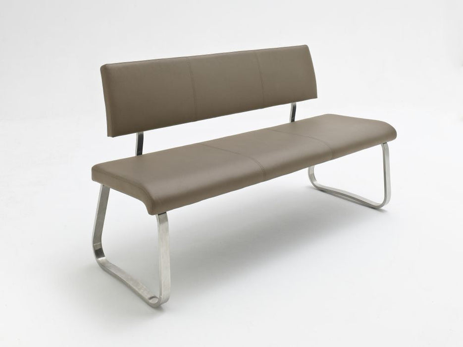 Sitzbank mit atmungsaktiven Lederbezug. Bezug 100 % Rindsleder-Spaltleder. Gestell in Flachrohr 40x15 mm in Edelstahl gebürstet. Sitzbank bis zu 280 kg belastbar. Nettogewicht ca. 27,7 kg, Sitzmaße BxHxT 155x48x49 cm, Stellmaß BxHxT 15x86x59 cm, Ware wird zerlegt geliefert inkl. Aufbauanleitung