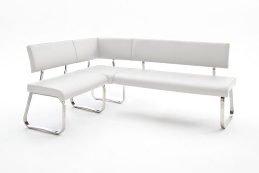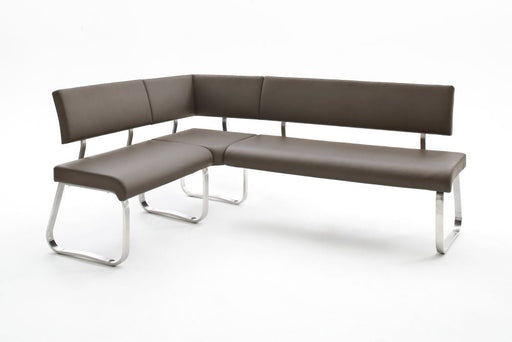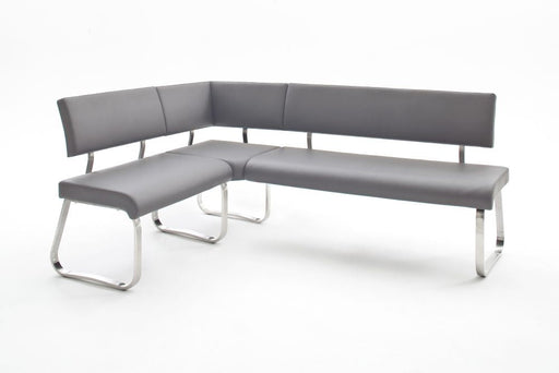 Vollständige Details anzeigenEckbank mit pflegeleichten Kunstlederbezug. Gestell Flachrohr in Edelstahl gebürstet 40x15 mm, Außenmaße Breite 200x150 cm, Elemente links sowie re...