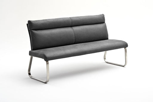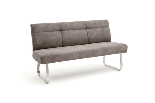 Sitzbank mit Stoffbezug in Büffellederoptik. Gestell Flachrohr in Edelstahl gebürstet. Sitz mit Taschenfederkern Polsterung. Sitzbank bis zu 280 kg...