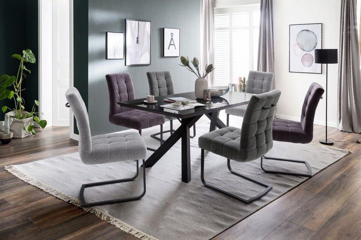 Esszimmerstühle 2er-Set mit Stoffbezug im Antiklook. Gestell in Flachrohr in schwarz matt lackiert. Sitz mit Taschenfederkern Polsterung. Bezug mit Aqua Clean einfach mit Wasser zu reinigen. Mit rückseitigen Griff für einfaches Handling. Stuhl bis 120 kg belastbar. Mit rundum Steppung. Sitzmaß BxHxT 48x48x46 cm, Stellmaß BxHxT 48x96x64 cm. Stuhl Nettogewicht 12 kg. Die Lieferung erfolgt zerlegt inkl. Aufbauanleitung