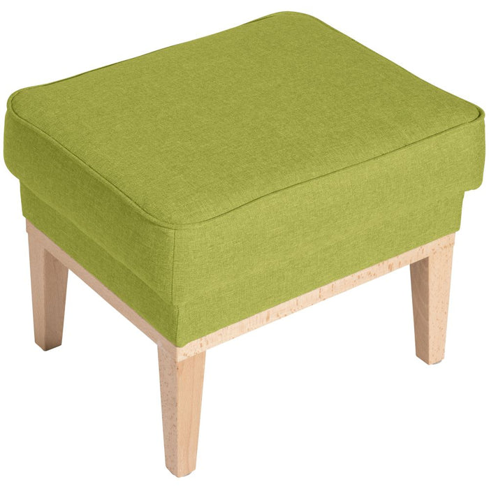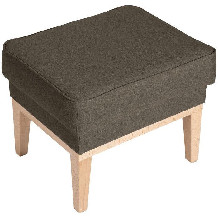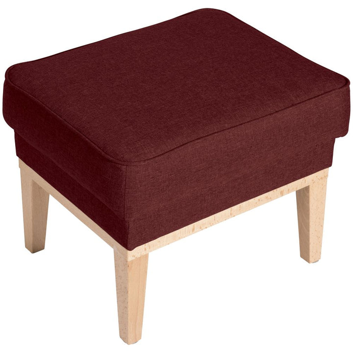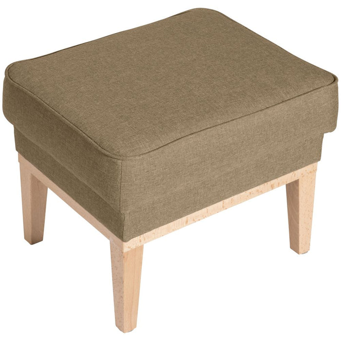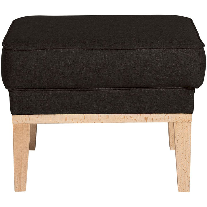 Passender Hocker zum Ohrenbackensessel Angelo mit umlaufendem Holzsockel.
