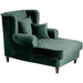 Megasessel mit integriertem Longchair im klassischen Ohrenbackenstil. Die Lieferung erfolgt inkl. 2 Zierkissen (55 x 55 cm und 40 x 40 cm). Außergewöhnlicher Blickfang für Ihr Wohnzimmer. Die gedrechselten Holzfüße runden das Gesamtbild ab. Die Füße sind zur einfachen Selbstmontage.