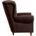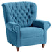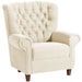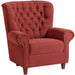 Stilvoller Hochlehnsessel mit charakteristischer Knopfheftung im Rücken. Seine liebevollen Details und die aufwändige handwerkliche Verarbeitung machen ihn zum Blickfang in jedem Raum. Die Füße sind zur einfachen Selbstmontage.