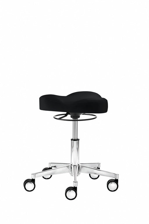 Mit Sattelsitz, stufenlose Höhenverstellung durch Gasfeder, Bewegungsfreiheit 360°, Hebelauslöser, Alu-Fußkreuz (ø 52cm), inkl. Hartbodenrollen mit...
