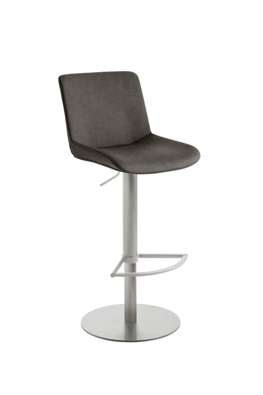 Vollständige Details anzeigenGestell Edelstahl gebürstet, gepolsterte Sitzschale Kunstleder Vintage Look schlamm mit dekorativer Rautensteppung, stufenlose Höhenverstellung dur...