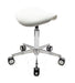 Mit Sattelsitz, stufenlose Höhenverstellung durch Gasfeder, Bewegungsfreiheit 360°, Hebelauslöser, Alu-Fußkreuz (ø 52cm), inkl. Hartbodenrollen mit Chromblenden, Sitzhöhe 39,5 - 50,5 cm.